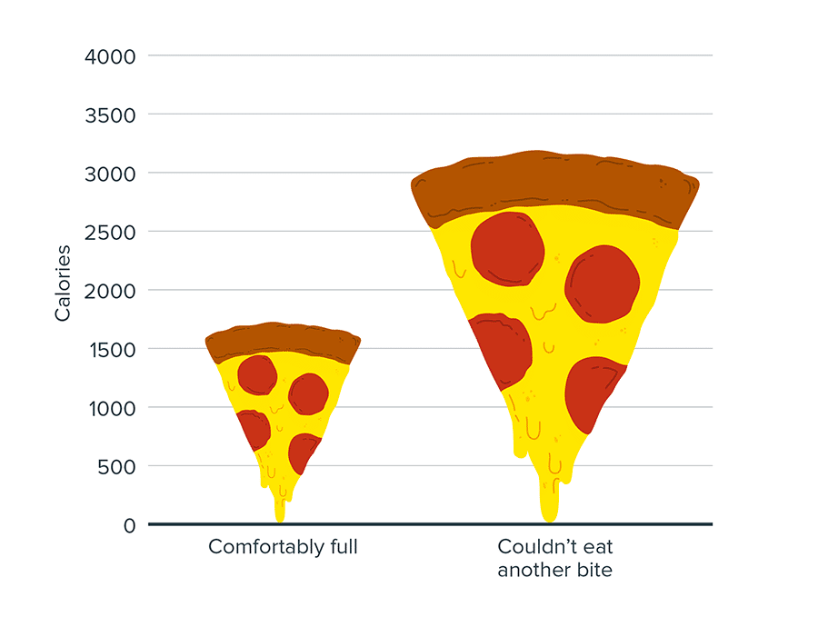 Entonces, si simplemente te guías por cómo te sientes, y no estás al tanto de las calorías por porción, es posible que comas mucho más de lo que necesitabas.